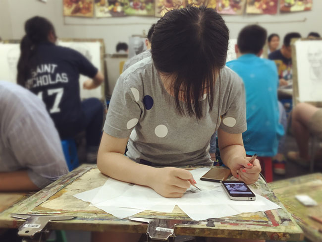 大神真是越来越多了呢!当然,光鲜亮丽的作品背后、每个美术生都有着这些 “不寻常“的经历,比如:当你看到满手黑色的人,他不是挖煤的就是美术生;当你走在街上看到满身颜色的人,他不是装修工就是美术生;当你看到一个一会儿说天空颜色太灰,一会儿说这人动态不错的人,他不是妄想症就是美术生;当你看见整体眯着眼睛看东西的人,他不是近视眼就是美术生;当你看到盯着人一直碎碎念形体、骨点、转折的人,他不是变态就是美术生;这么多的“不寻常”只是我们的“日常”而已,我们“无所畏”~!