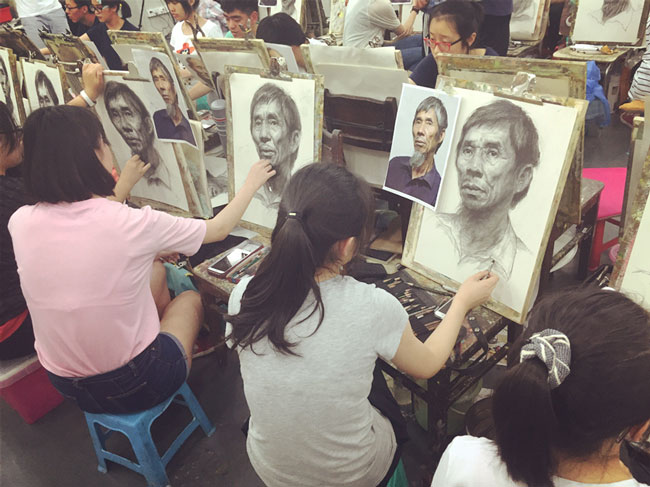 /一大早我们就要背负承重的“包袱”来画室直到晚上