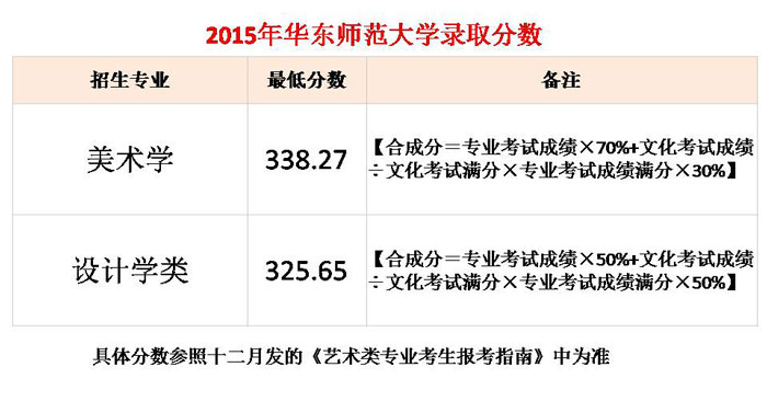 取得上海市美术统考本科合格证, 2015年高考成绩达到市招生管理部门划定的艺术类本科文化分数线(242分),学校按专业考试成绩50%和文化考试成绩50%的比例计算合成分