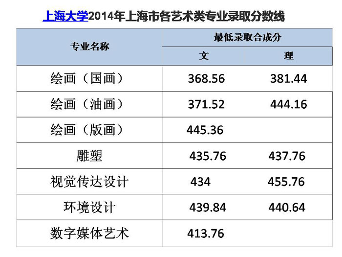 取得上海市美术统考本科合格证, 2015年高考成绩达到市招生管理部门划定的艺术类本科文化分数线(242分),且高考英语单科成绩达到我校最低分(70分)要求后,学校按专业考试成绩70%和文化考试成绩30%的比例计算合成分