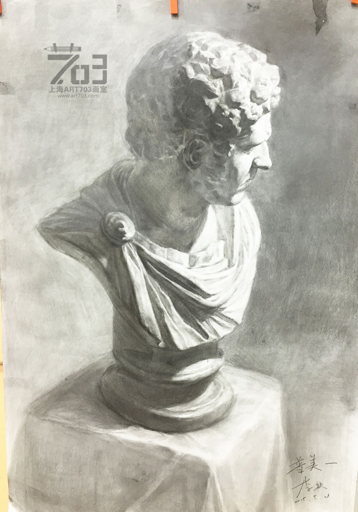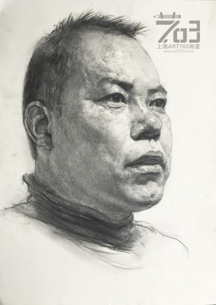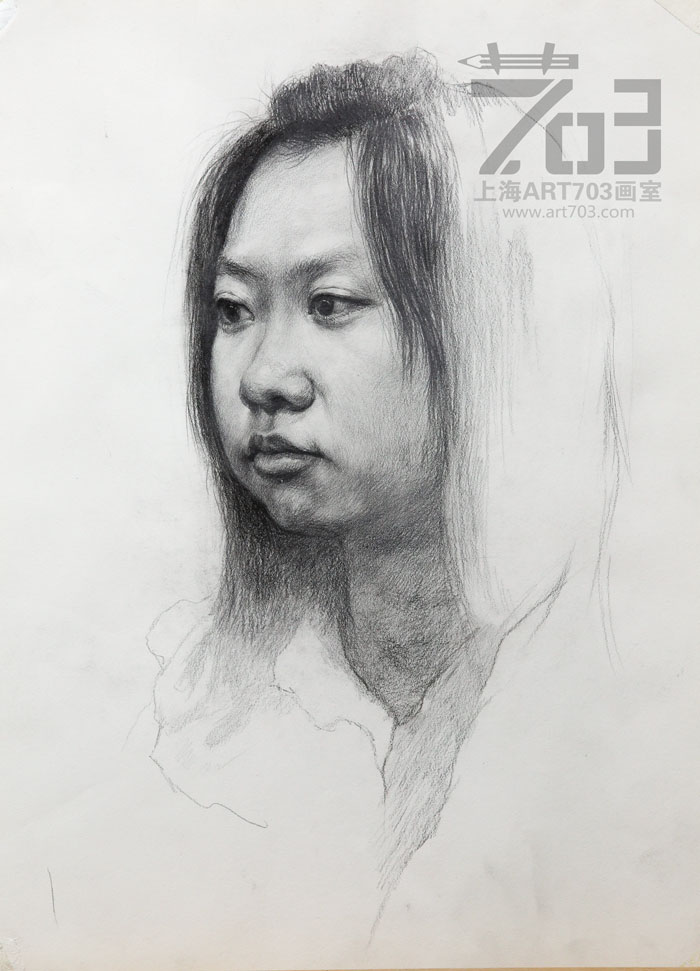 画素描要先从暗部入手,它是画亮部中深浅的依据,并且要先从明暗交界处,从转折部分画起,从前往后画也就是从近往远画,以表达空间。