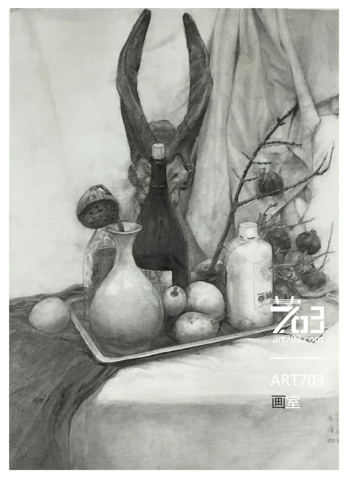 暗部是乐队中的低音部,是为衬托亮部和高音部而成的。暗部为衬托亮部而存在,它就不应喧宾夺主,暗部是无名英雄,是舞台上的配角。不应把统一的暗部中间的部分分开观察,分开一件件去画,要求把暗部作为一个整体一起观察一起画,合起来画或混起来画。