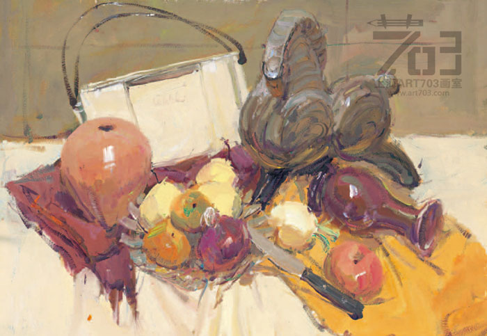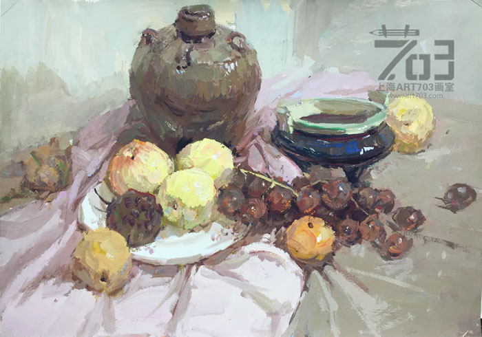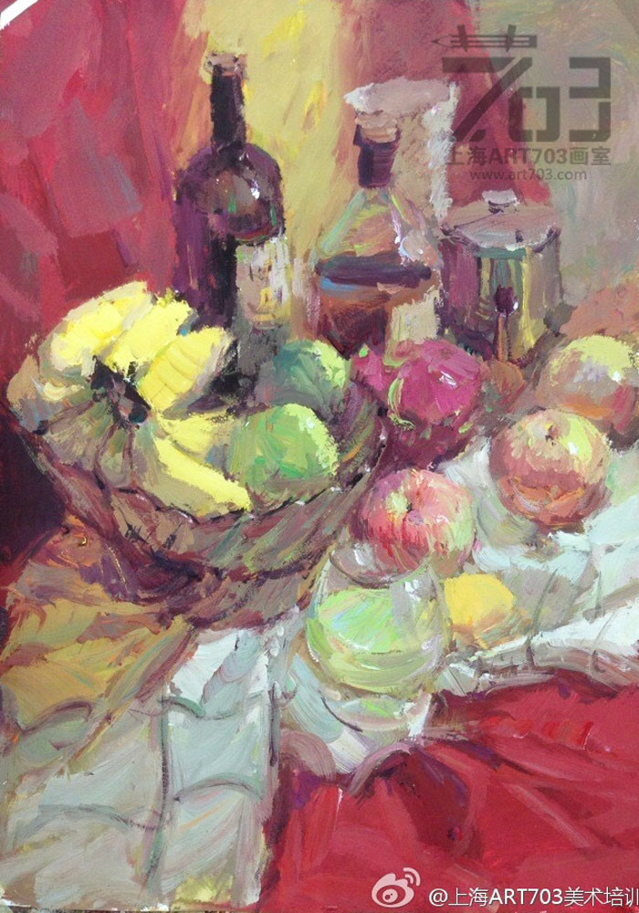 6、训练形色结合的能力。美术高考不但考察大家驾驭色彩的能力,还考察大家形色结合的能力,水粉画一般采用直接画法,不同于罩染技法,要求以色塑形,这就要求有素描造型的能力,在这里形和色是紧密相连的,做到形色结合是大家应具备的基本能力。
