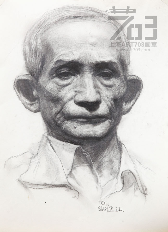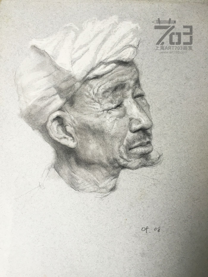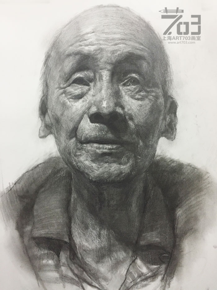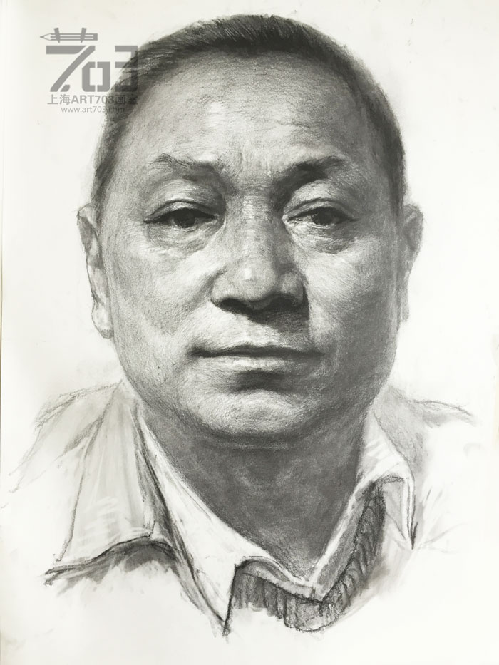 要从整体角度审视、控制好自己的画面。在深入阶段把握住画面整体尤为重要。画面的整体大关系不是照抄对象的大关系,而是作为参考,特别是对大的黑白灰关系,主体与背景的关系,强调不强调光影与明暗等方面,都可以自主地处理好画面的大关系。画面是检验整体观念和整体控制能力的一面镜子。