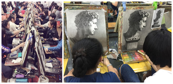画家是靠不断提高素描能力,打好坚实基础造就出来的。作为以研究为主要内容的素描训练,一开始就必须以理解为中心,训练正确的观察方法。比如,面对一个复杂的物体,首先训练你以直线去概括曲线的观察能力,用几何形去测定对象的基本形的特征,学习用垂直线和水平线去判断对象中各种斜线的角度和确定各个要点的位置……这种种观察方法,都是最初级的又是最基本的必须要掌握的观察方法。不如此,面对复杂物体,就会无从下手。